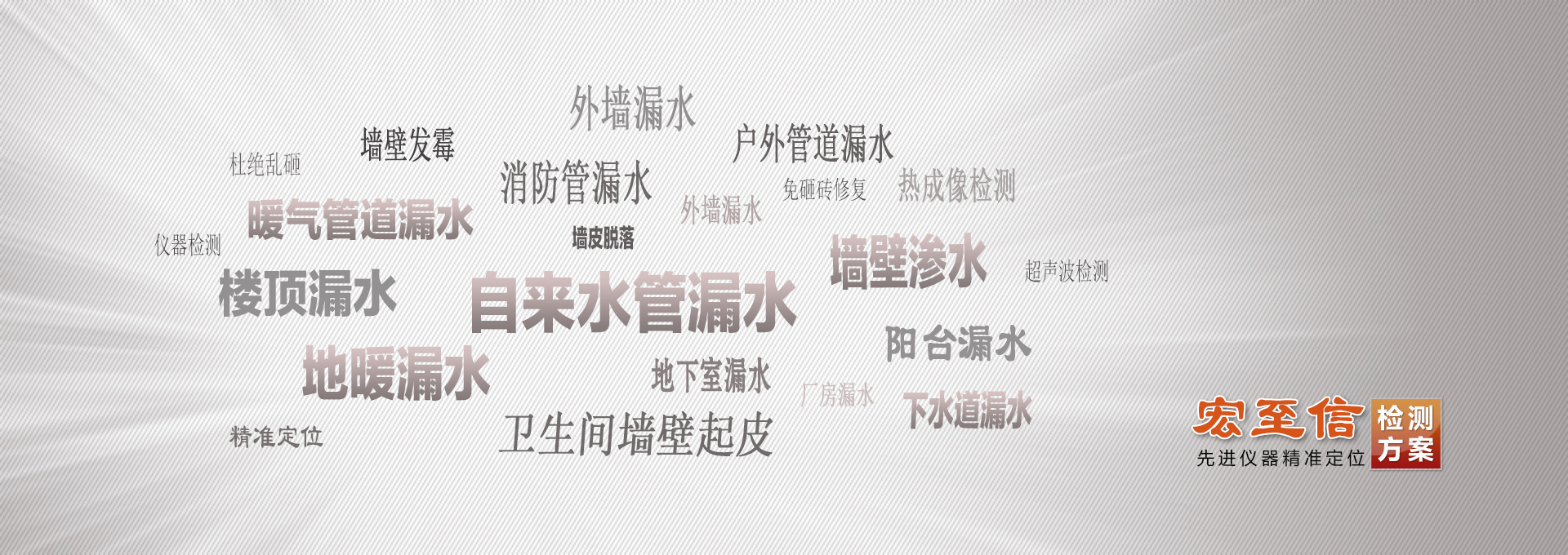 青島宏至信漏水檢測公司,是青島地區一家專業從事管道漏水檢測公司,主要服務項目:水管漏水檢測、地暖漏水檢測、檢測自來水漏水點、查找地下水管漏點、探測埋地自來水漏水、消防管道漏水檢測、下水管道漏水點定位、尋找地暖管道漏水點、家庭地暖漏水點定位、檢測衛生間漏水原因、地下室漏水檢測、樓頂漏雨檢測、檢測墻壁陰濕發霉、陽臺滲水檢測、供熱管道跑水檢測等服務,公司利用先進的漏水檢測儀器可精準定位漏水點位置,查不到漏點不收費、檢測漏水項目可提供漏水檢測報告,聯系我們從此遠離漏水、滲水、滴水、跑水的困擾...